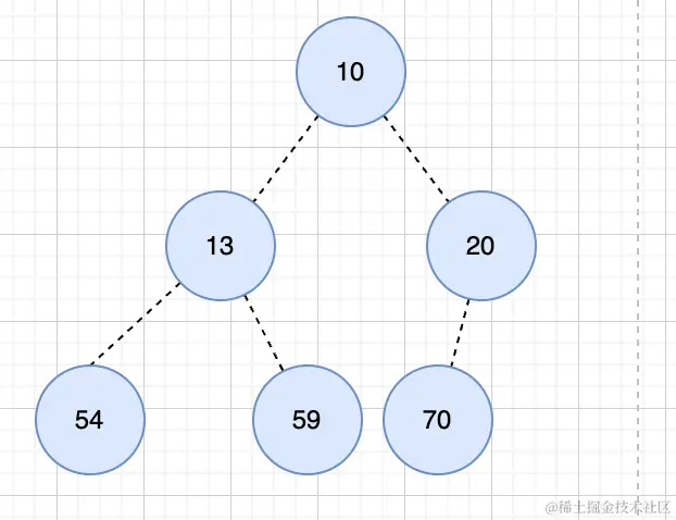 第二步:将10放入第一个元素的左节点上,发现父节点大于新增的子节点,不调整堆结构。