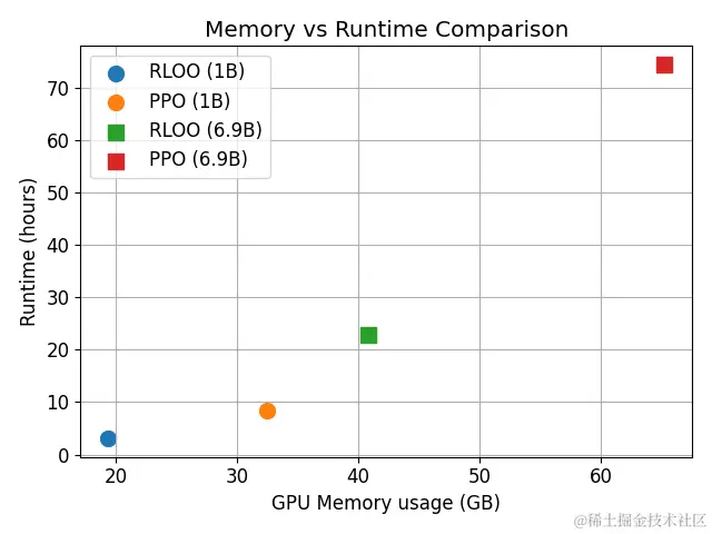 - 🚀对于 1B 参数模型,RLOO 的运行速度比 PPO 快 2 倍,对于 6.9B 参数模型,RLOO 的运行速度比 PPO 快 3 倍。