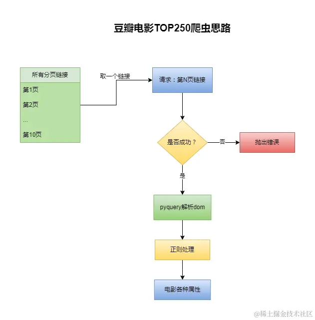 由一个分页链接开始,通dom节点的形式 + 数据处理(正则处理、字符处理、类型转换等), 获取电影信息