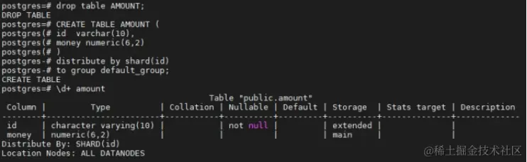 创建测试表AMOUNT