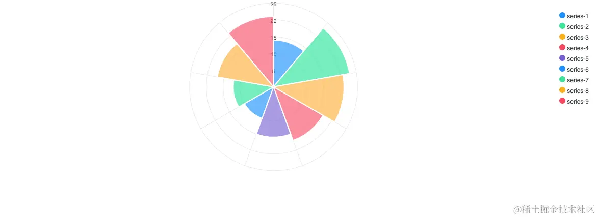 - 可指定雷达图的类型(雷达、面积雷达、极线雷达)