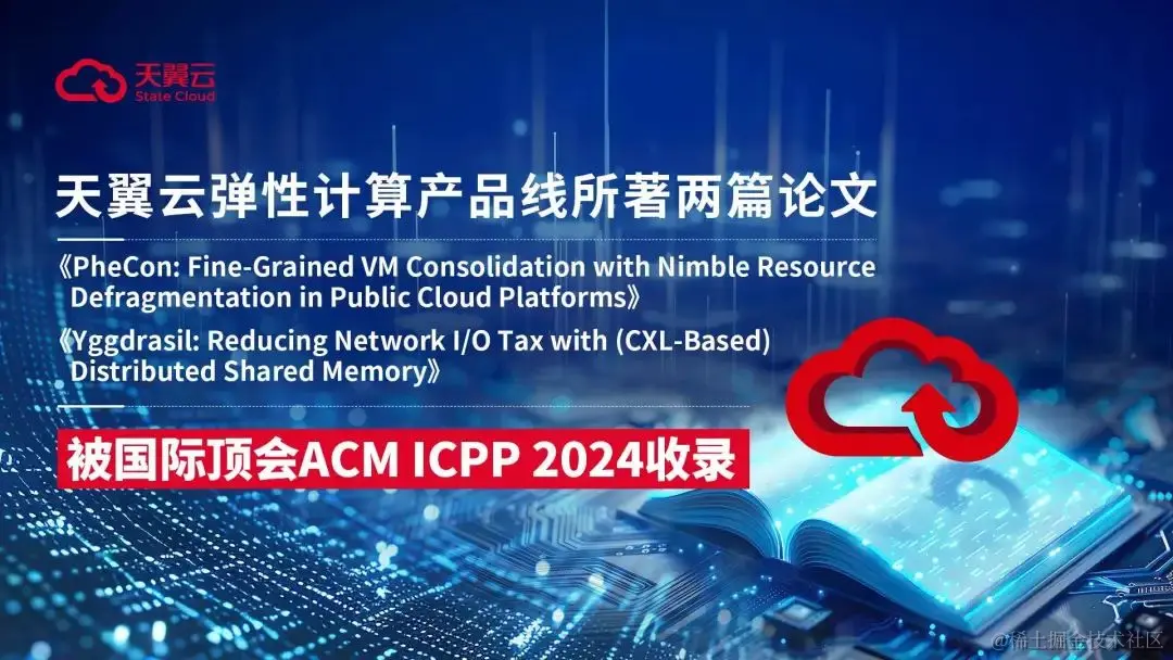 近日,由天翼云科技有限公司弹性计算产品线天玑实验室撰写的两篇论文《PheCon: Fine-Grained VM Consolidation with Nimble Resource Defragmentation in Public Cloud Platforms》及《Yggdrasil: Reducing Network I/O Tax with (CXL-Based) Distributed Shared Memory》被ACM International Conference on Parallel Processing(ICPP)收录。
