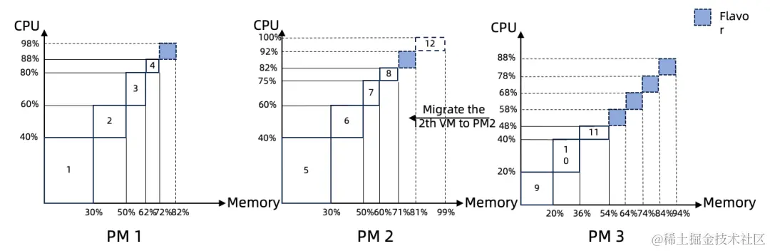 本论文创新性提出一种新型细粒度碎片整理算法——PheCon,通过云服务器二次调度的方式聚合集群内资源碎片,以满足更大规格资源的开通需求。同时,该论文还提出了基于分治思想的NUMA感知启发式算法和“诱导迁移”(Induced Migration)技术,通过规格填充、物理服务器选择、云服务器排序和NUMA调度,实现集群布局优化。