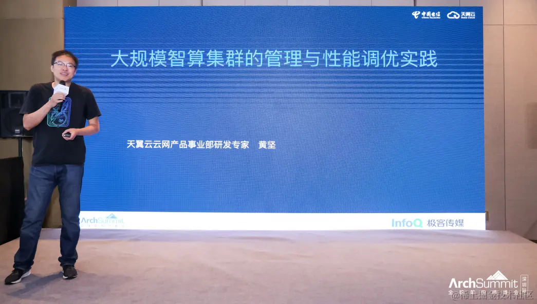 近日,ArchSummit全球架构师峰会在深圳隆重开幕,本次大会以“智能进阶. 架构重塑”为主题,探讨AI浪潮下,企业架构如何适应大模型和云原生的时代趋势,寻找既有应用成果又有成本效益的解决方案。国内外100余名顶尖专家齐聚一堂,围绕AI、大模型、云原生等话题展开深度交流。天翼云云网产品事业部研发专家黄坚受邀参会,并在“智算平台建设与应用实践”专题会上发表主题演讲,分享了天翼云在超大规模智算集群运维及管理方面的创新思路和实践经验。
