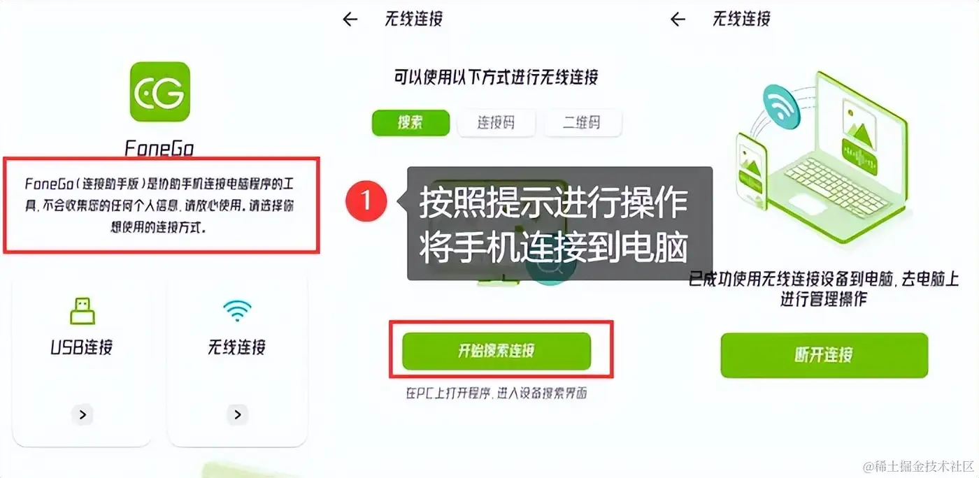 第一步:在官网下载并安装,确保下载的是与你手机系统相匹配的版本。然后根据指引,选择想要的方式连接手机到电脑。