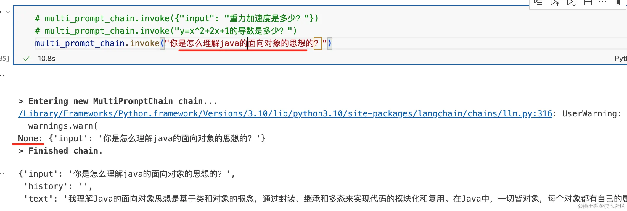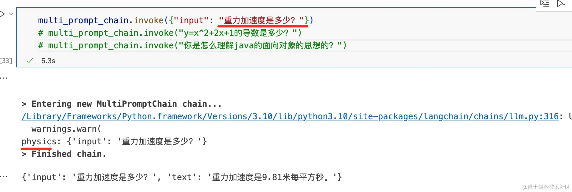 - 使用MultiPromptChain选择某个链,然后再去执行此链。