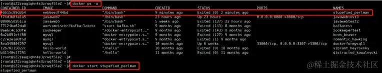 查看所有容器,然后使用容器启动命令,运行刚才创建的centos容器:docker start stupefied_perlman