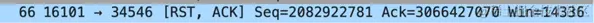 如果从tcpdump抓包上来看表现就是(如下图)RST的报文中含有了一串Ack标识。