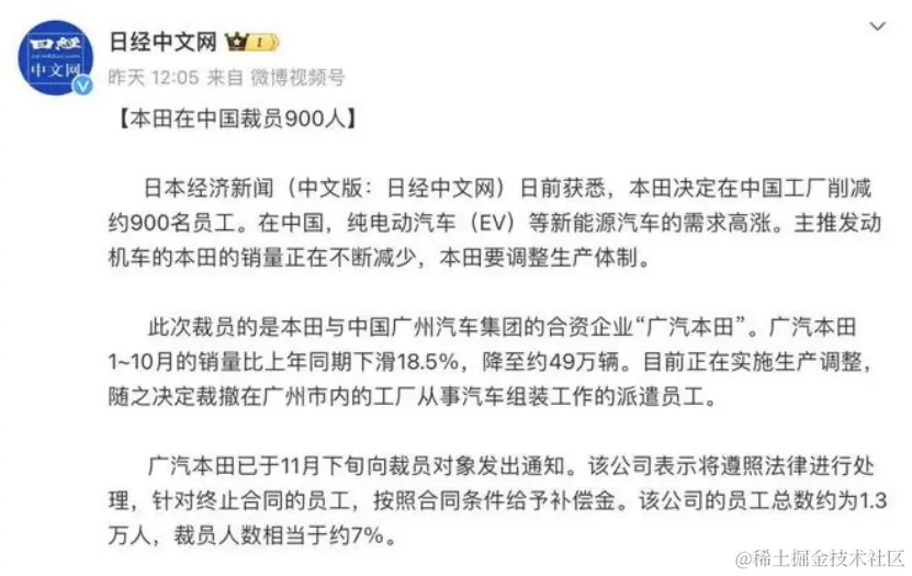 去年7月,广汽丰田被曝大规模裁员,被裁人数在1000-2000人之间。去年底,广汽本田也被曝出成立25年以来首次裁员的消息,削减约900名合约工,占员工总数的7%;今年5月,广汽本田再次传出削减生产团队的消息,称约有1700人“自愿离职”。