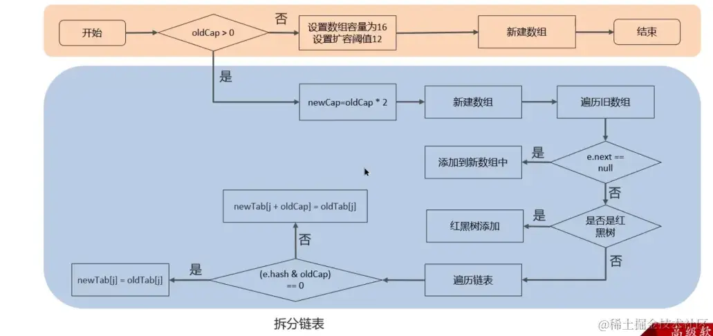 resize()进行扩容,第一次添加数据时初始化数组长度为16,设置扩容阈值为12,之后每次元素数量达到扩容阈值时再进行扩容。 - 每次扩容时,新数组的容量都是之前的2倍。
