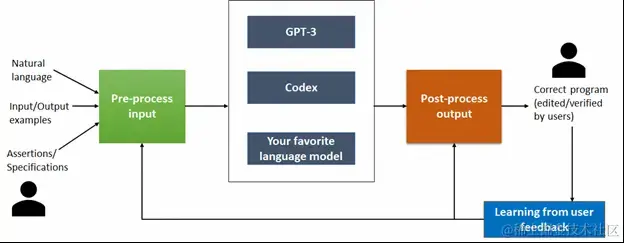 Jigsaw 获取英语查询并使用适当的上下文对其进行预处理,以构建可以馈送到大型语言模型的输入。该模型被视为一个黑盒子,并且 Jigsaw 已使用 GPT-3 和 Codex 进行了评估。这种设计的优势在于它支持即插即用最新和最好的可用型号。