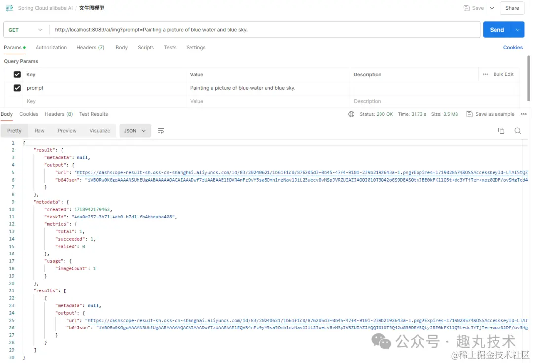 调用文生图模型接口,可以看到AI生成了我们想要的图片。