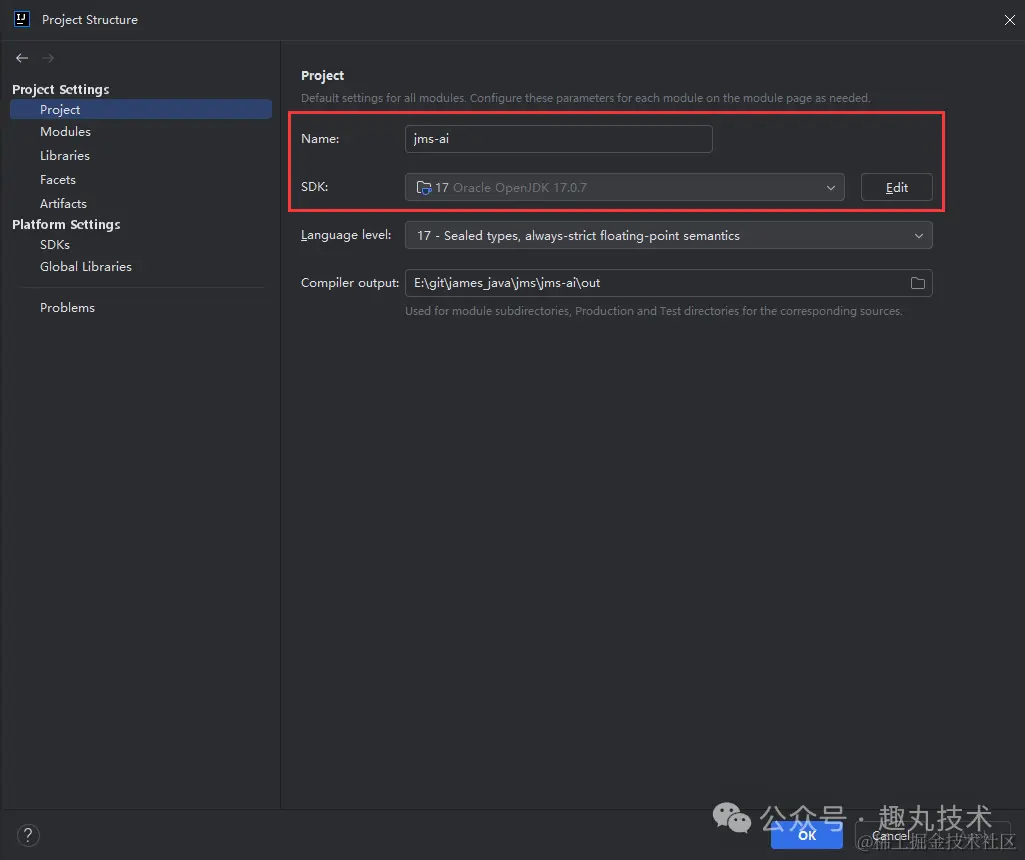首先新建一个Maven项目,JDK选的是17版本