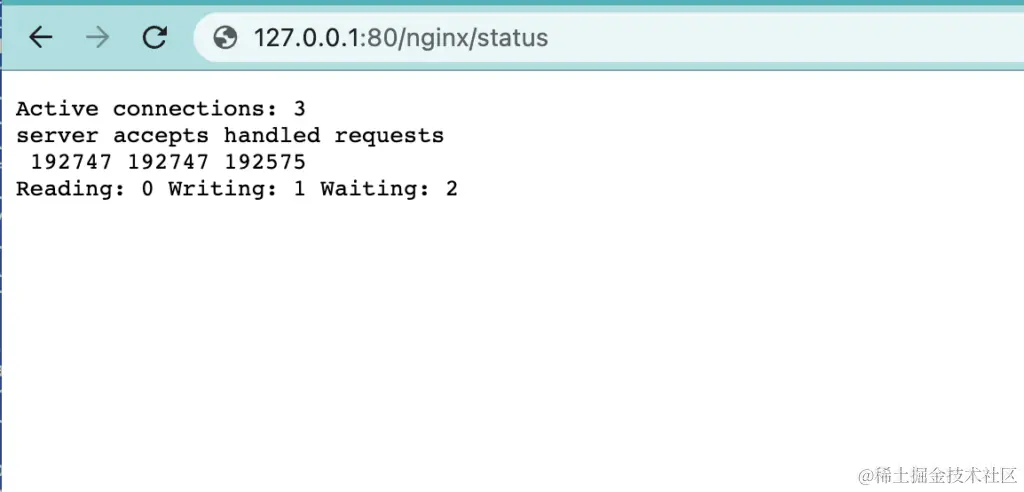 http://127.0.0.1:80/status 就可以拿到一些基本的运行数据。