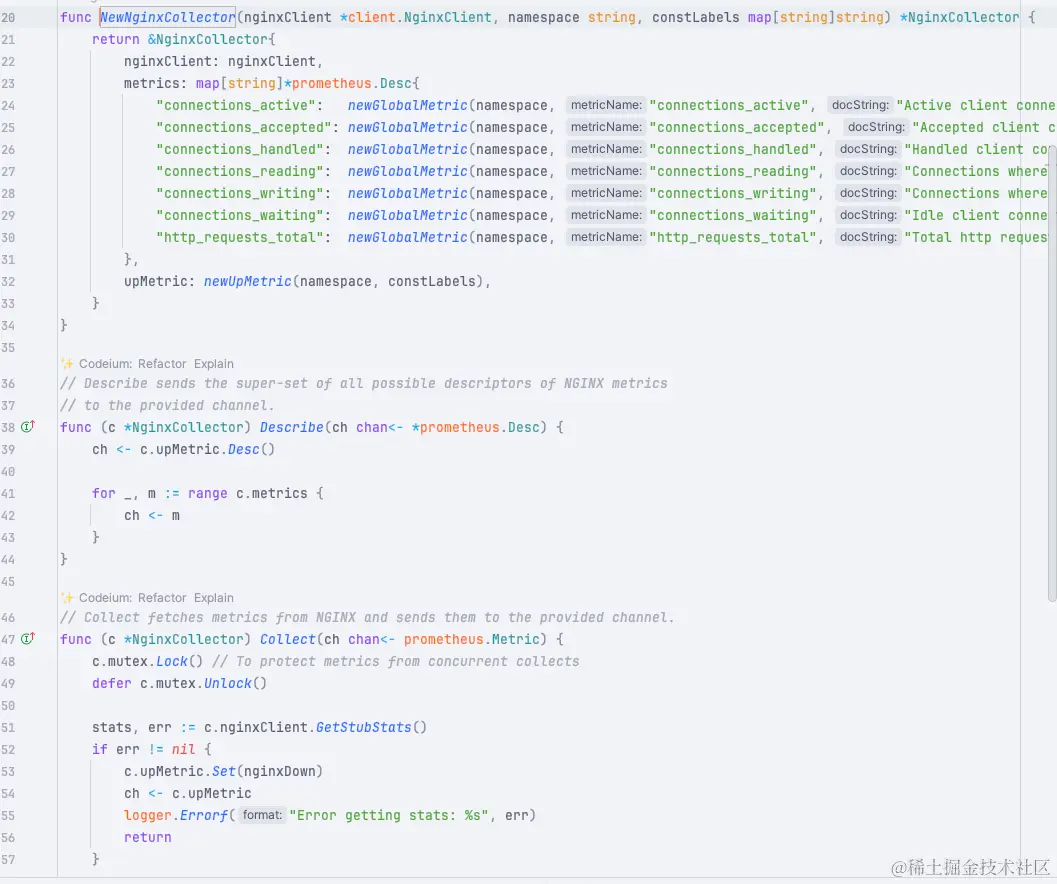 就是构建之前在 nginx exporter 中的 prometheus.Collector,其实代码大部分也是从那边复制过来的。