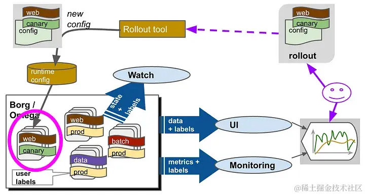 例如,Borg 并不是真正可扩展的,因此必须在其他服务和客户端中构建推出、批处理调度、cron 调度以及水平和垂直自动缩放等附加功能。这些其他服务会将数据嵌入到作业资源中,并持续轮询更改,例如新作业,这占 Borg 控制平面所有 API 请求的 99% 以上。通过 Watch API 订阅更改的能力仅受支持用于作业任务端点,方法是将动态调度的主机 IP 地址和动态分配的主机端口写入Chubby,这是启发了 Zookeeper 的键/值存储。