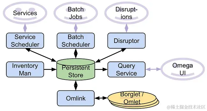 我们能够挑选有效的方法,丢弃无效的方法,简化一些过于复杂的方法,并再次迭代一些方法。Omega 中的许多概念,例如调度单元,在 Kubernetes 中被直接重新使用了。有些,比如 污点和容忍,被简化了,但名称与 Omega 中的相同。术语“ 声明” 也来自 Omega。中断预算 的想法来自 Omega,灵感来自 Borg 的中断代理服务。