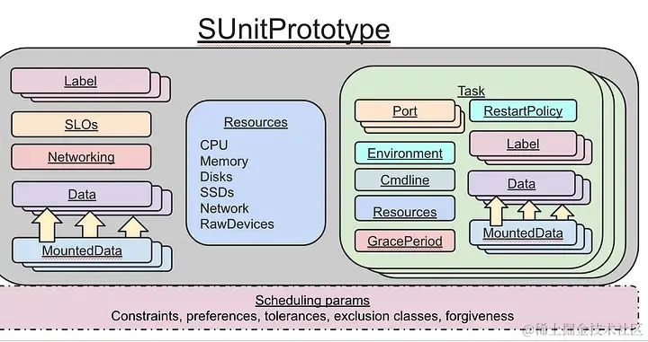 - 调度单元(sunits,又名分子):资源、任务、数据的捆绑包