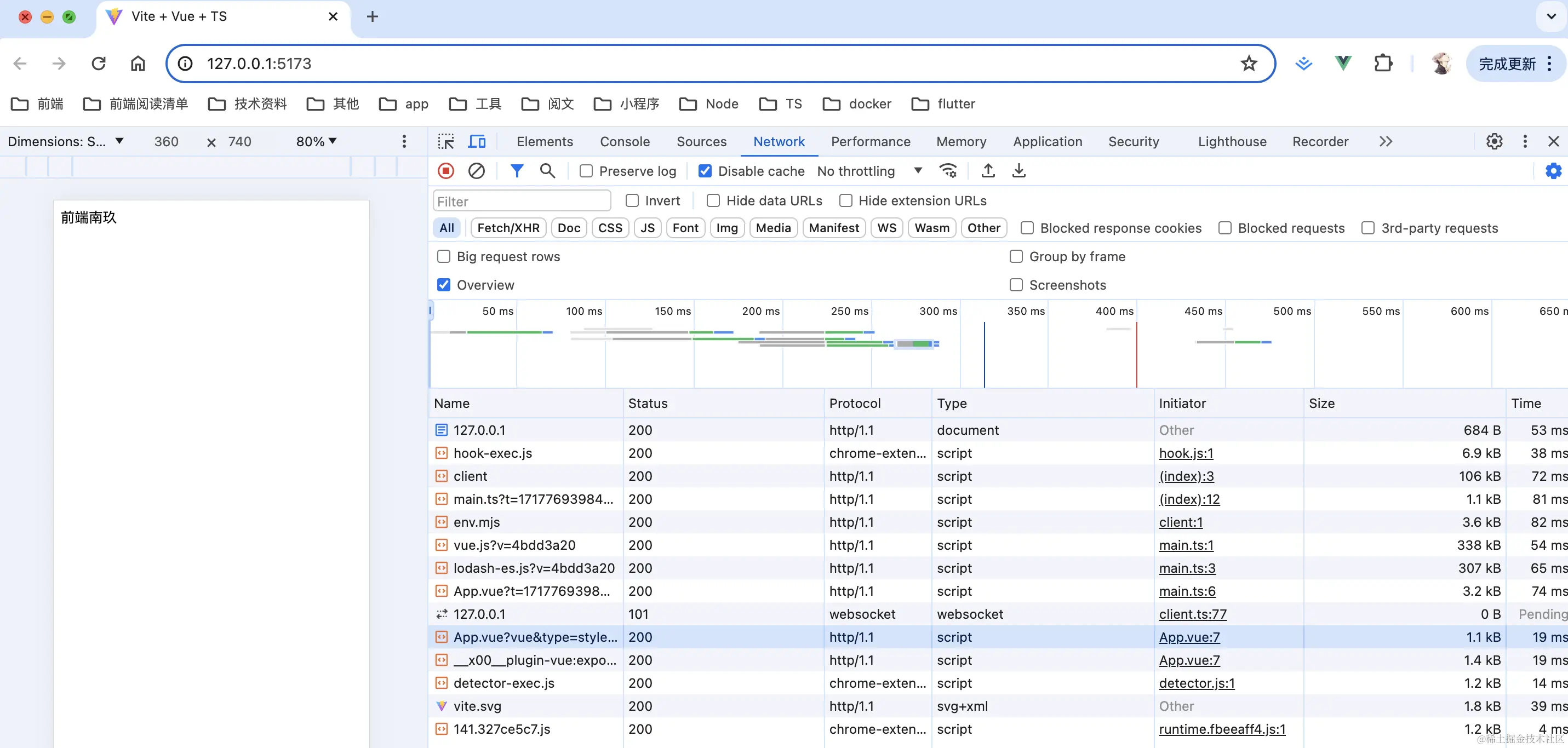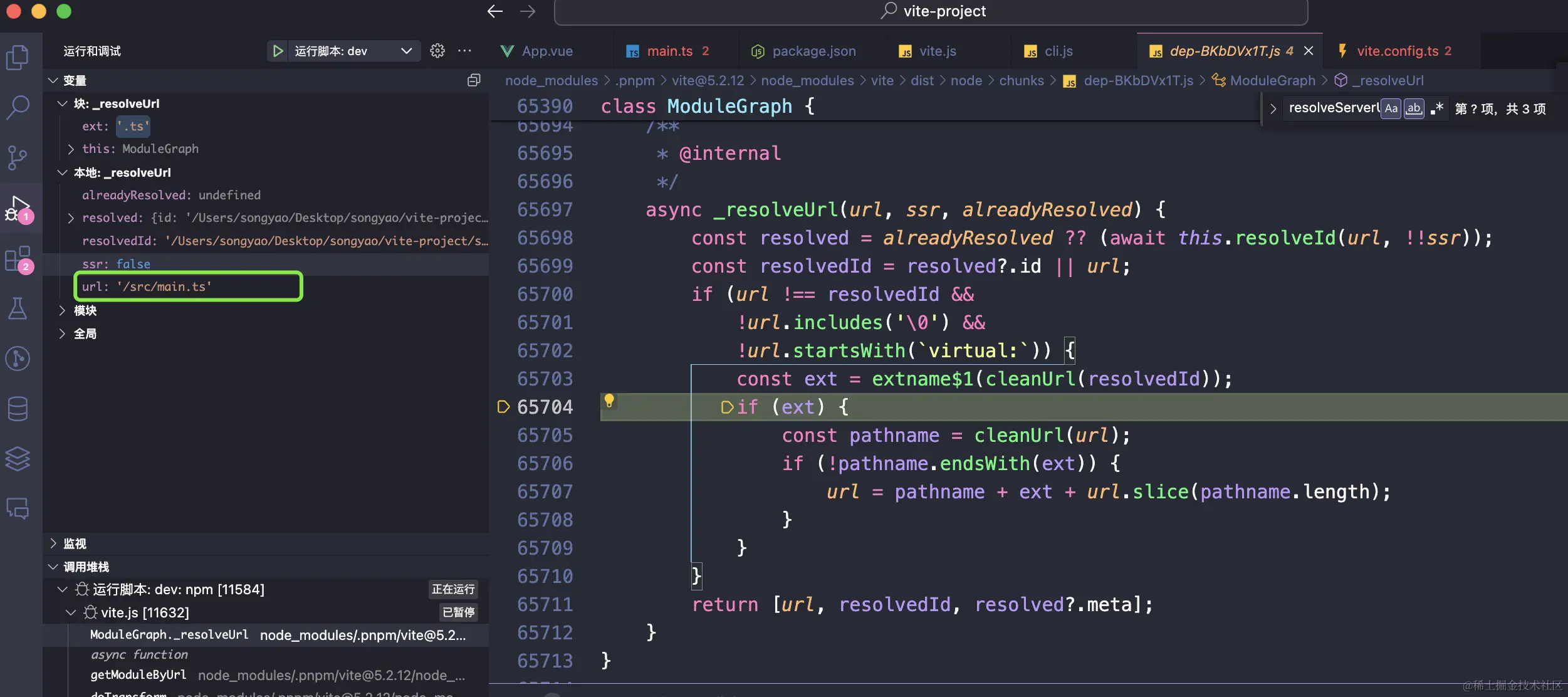 里面有一个脚本文件<script type="module" src="/src/main.ts"></script>,接下来就该请求并处理入口文件main.ts了