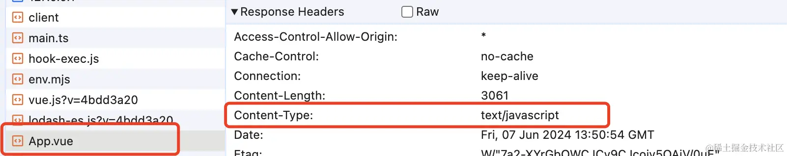 App.vue经过编译后文件类型已经转成JS了!