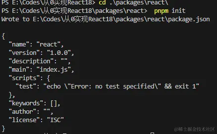 先创建react package并初始化