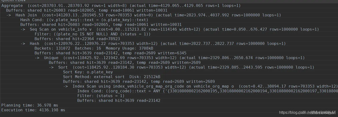 于是铁蛋将共享缓存区的内存分配为20GB, 单个线程用于hash和排序的分配了200MB。 重启数据库, 跑了下执行计划。 sql里面从以前的一分钟,四五十秒变成了三四秒左右。