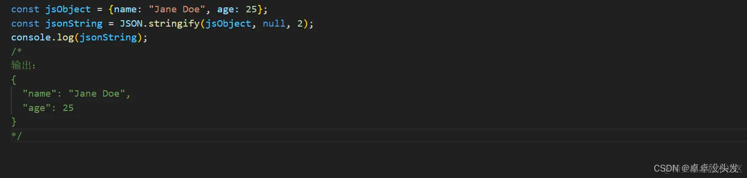 replacer函数时,它不会递归地应用于嵌套对象。如果你需要过滤嵌套对象,必须在replacer函数内部处理。 replacer函数主要用于实现自定义的序列化逻辑,比如排除某些属性、转换属性值的类型等。- 使用