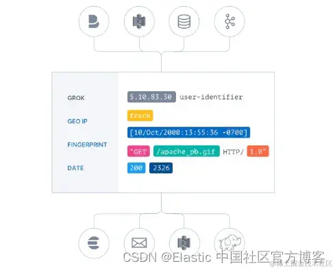 请参阅下面的 Logstash 管道示例,该管道从文件中提取访问日志,使用过滤器丰富数据,并将其发送到 Elasticsearch。