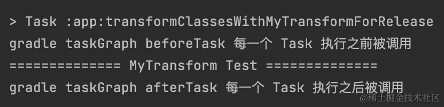 Transform 是依靠 Task 执行的,在配置阶段,Gradle 会为每个加入的Transform 创建对应的Task,添加Transform的操作负责处理任务之间的依赖关系。并且Transform是一个流式过程,前一个Transform Task的输出将作为下一个Transform Task的输入。