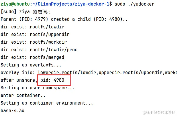 2、如果是通过fork创建的子进程,通过使用函数unshare为进程配置新的namespace