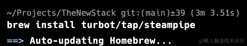 有一个 可用的 CLI 适用于我的 macOS 版本,我很乐意使用它的界面。像往常一样,我使用 Warp 作为我的 shell,尽管 Steampipe 有自己的 CLI,稍后会优先使用。在更新 Homebrew 三分钟后,我直接安装了 Steampipe: