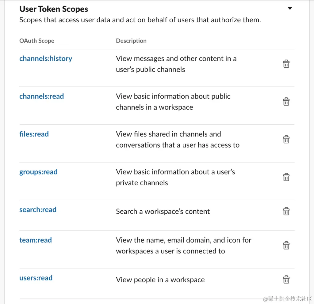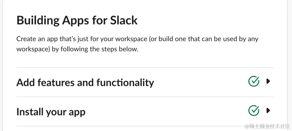 但首先,我们如何连接到它?幸运的是,Slack 有一种方法可以在范围内授予令牌以供应用使用。我很久以前就使用了这种方法,当时我研究了 Dark,无服务器后端工具。当时有点棘手,所以我希望它变得简单一些。然而,这个过程只是稍微顺利一些。