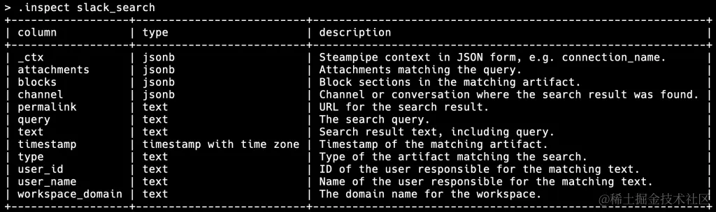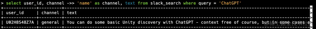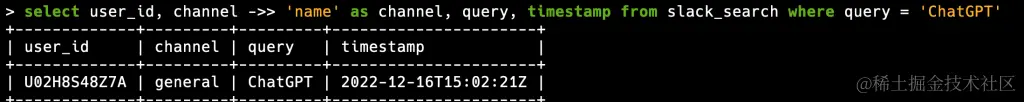 现在让我们看看 slack_search 表,它可以更准确地放大信息: