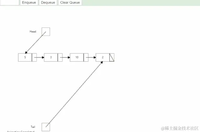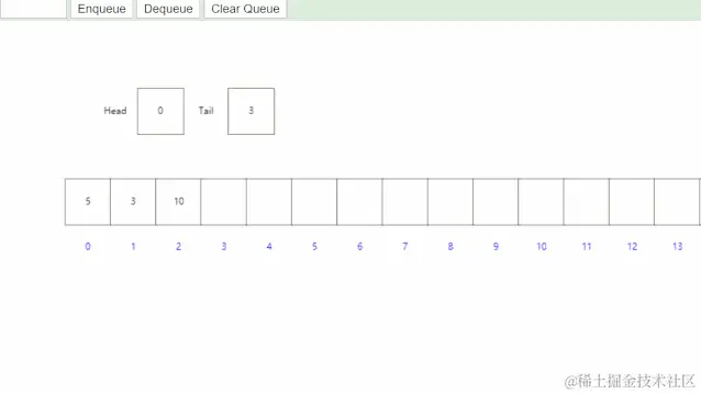 使用数组实现的队列,先进队列的,在执行 Dequeue 操作时,会先出队。如下,元素5是第一个入队的,所以Dequeue 操作发生时,第一个出队: