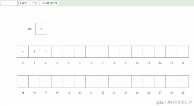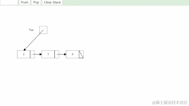 栈遵循先进后出,后进先出,本动态图使用链表实现栈: