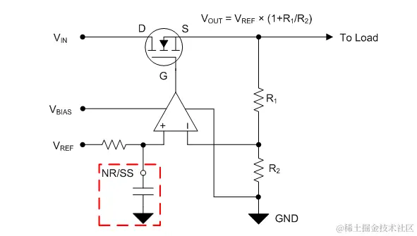 图3:带有NR/SS引脚的LDO的常见拓扑
