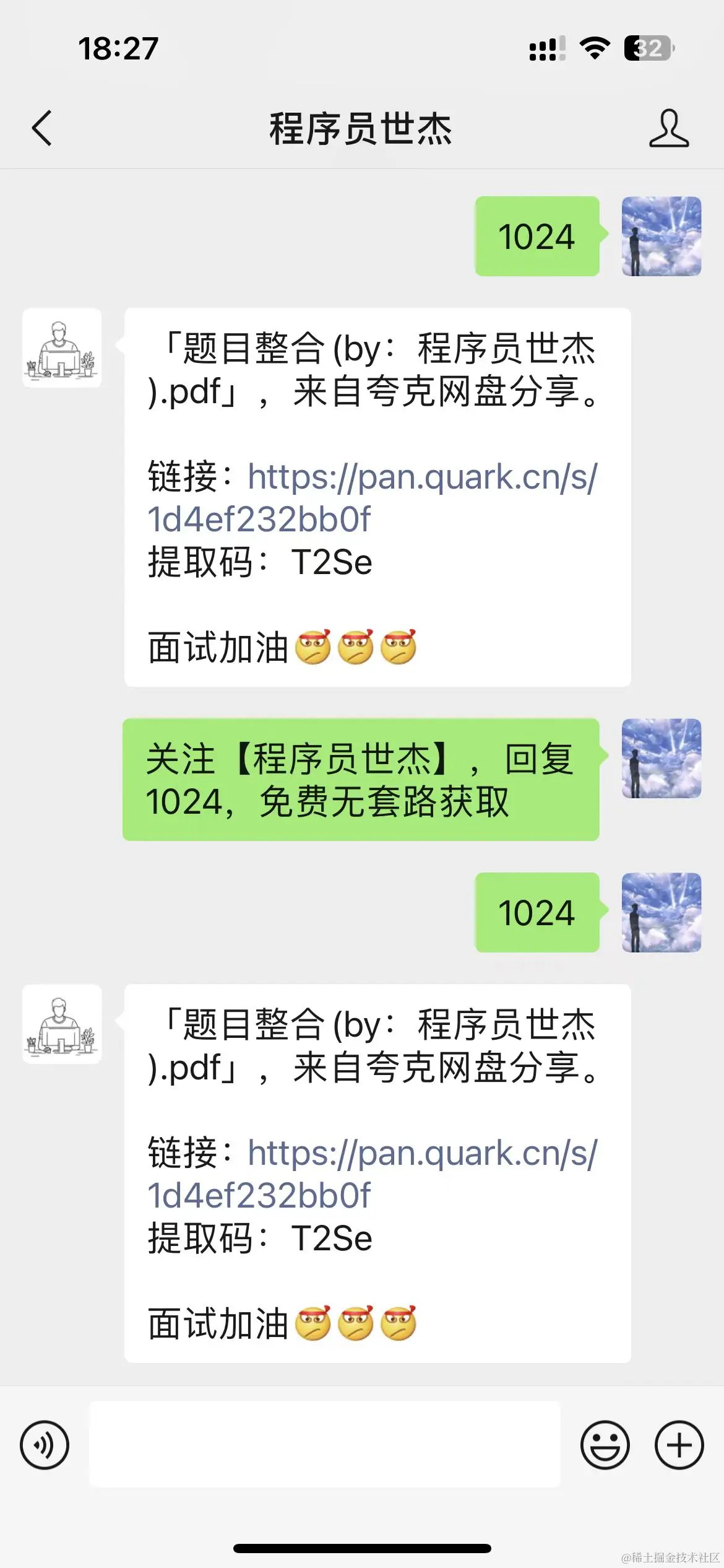 现在这个行情,又又又要开始准备面试了~~ 程序员世杰 2024-06-22 113 阅读1分钟 亲爱的程序员朋友们: 这些资料曾经帮助过许多有志之士顺利拿下抖音、快手、阿里等大厂的Offer,现在也希望它们能为你的面试旅程助力! 关注【程序员世杰】回复【1024】惊喜等你来拿! 截图 关注【程序员世杰】回复【1024】惊喜等你来拿! 敬请关注【程序员世杰】