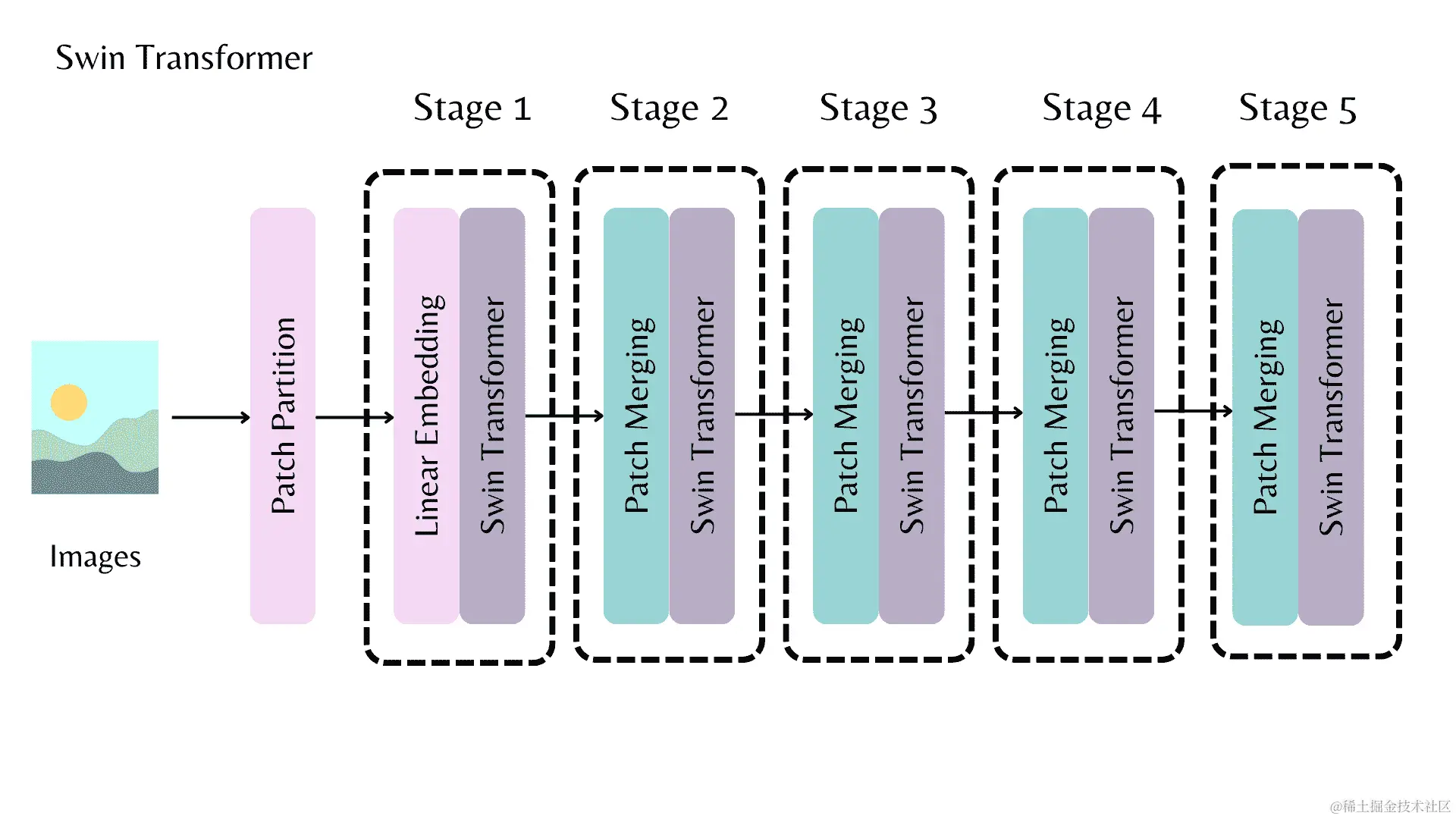 您可以使用AutoBackbone类初始化一个模型作为骨干,并获取任何阶段的特征图。您可以定义out_indices来指示您想要从哪些层获取特征图。如果您知道层的名称,也可以使用out_features。您可以互换使用它们。如果同时使用out_indices和out_features,请确保它们是一致的。不传递任何特征图参数将使骨干产生最后一层的特征图。为了可视化各个阶段的外观,让我们以 Swin 模型为例。每个阶段负责特征提取,输出特征图。