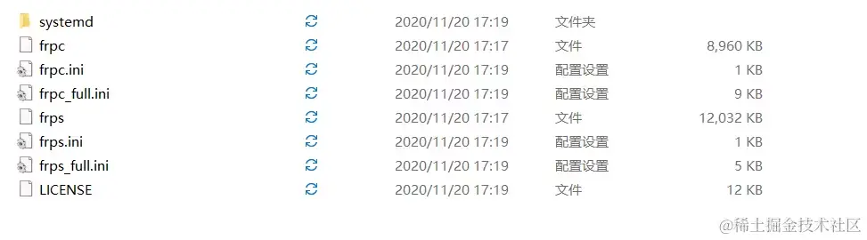 将压缩包解压后内容上传到frp文件夹下,保证frp文件下为下图文件(推荐使用winscp上传)