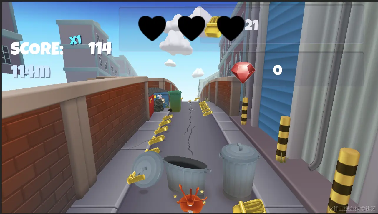 实现思路 :在教程开始之前,我们分析一下跑酷类游戏制作思路