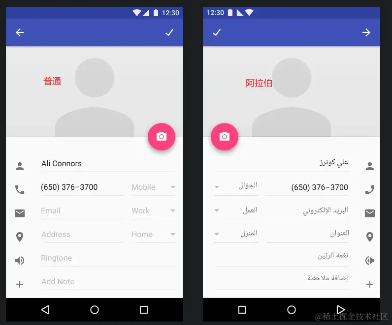 - 文本是向右对齐且从右往左阅读,文本方向始终和语言保持一致,比如数字(电话号码、时间)