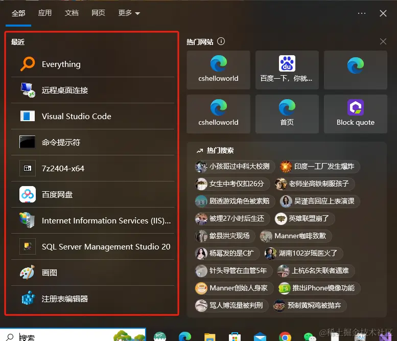 当我们点击win10系统搜索框的时候,输入名称 ,win10会帮助我们匹配到对应的应用。这里搜索框实际上就是windows系统的开始菜单。