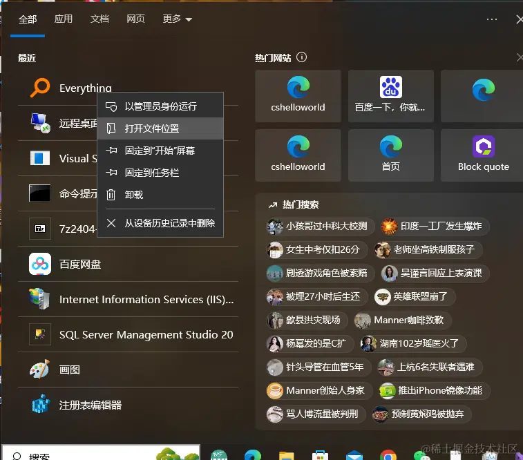 接下来我们随便找一个应用,右键,然后点击 打开文件位置,我们来看下这个EveryThing的具体位置。