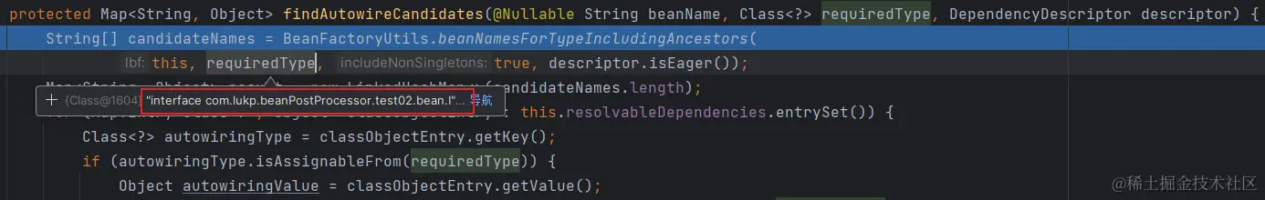 - 首先会通过当前被注入类的类型来寻找对应符合要求的子类 bean,就例如接口 I 就是如此,在寻找被注入类的核心方法 findAutowireCandidates 具体的代码如下: