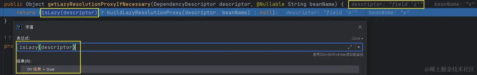 - 看到的是一个三元表达式,首先就是 isLazy(descriptor) 判断当前被注入对象是否是一个懒加载对象?