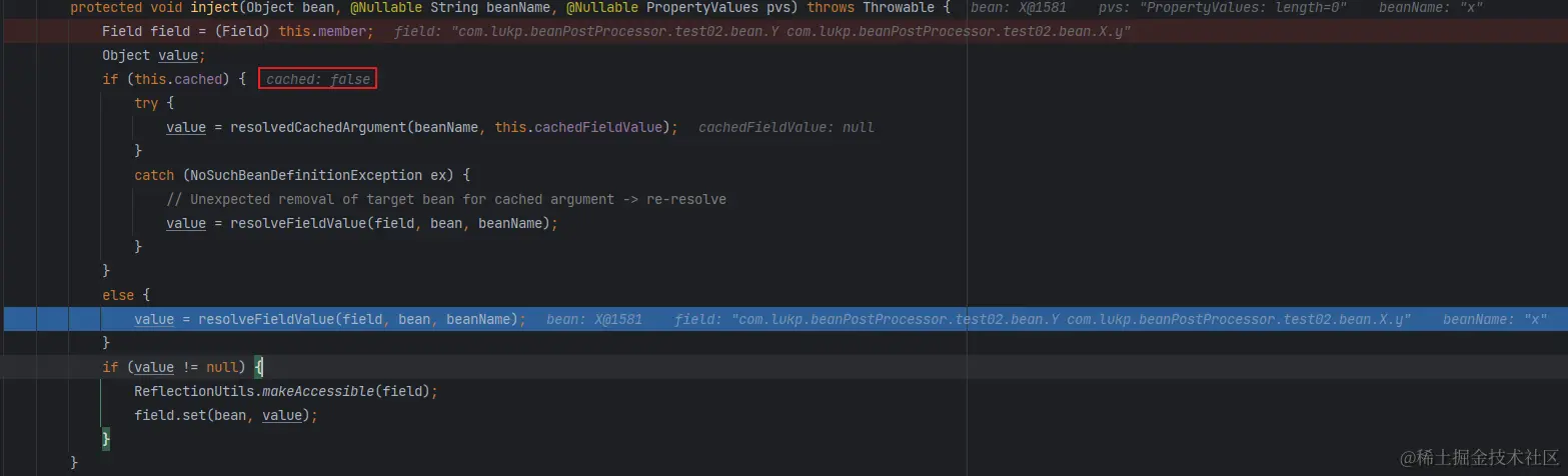 直到完成属性注入populateBean方法结束后才会完成该Bean的属性注入动作。
