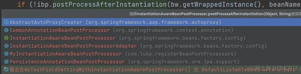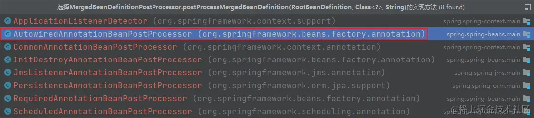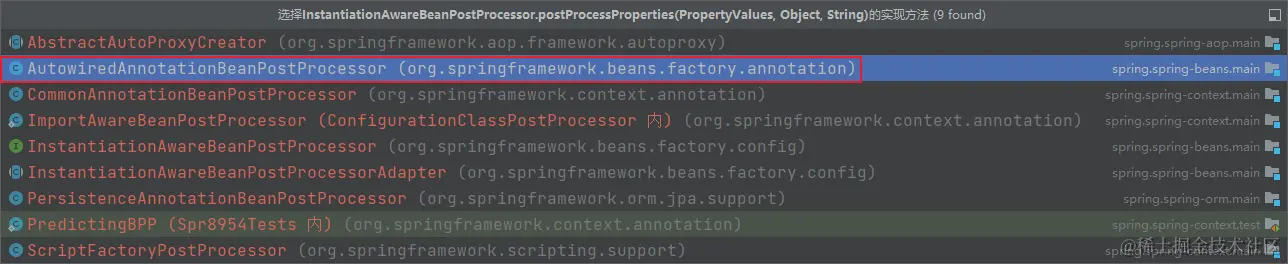 但是不要慌,咱们选择AutowiredAnnotationBeanPostProcessor实现中看。