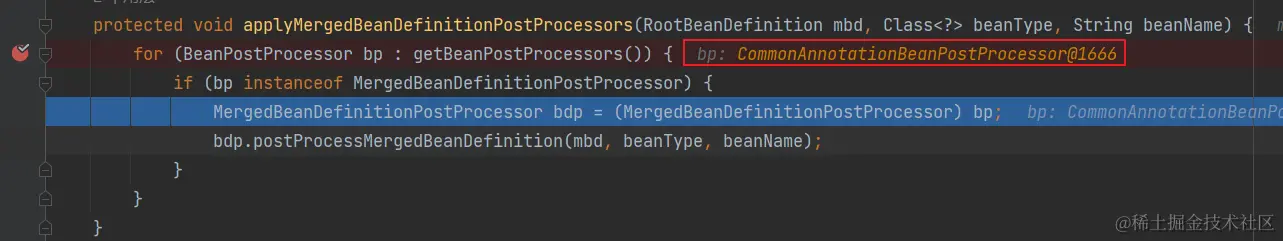 MergedBeanDefinitionPostProcessor bdp = (MergedBeanDefinitionPostProcessor) bp;