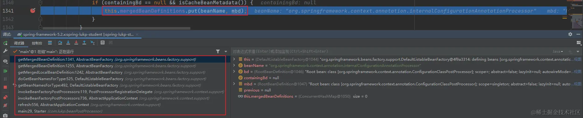 // 第三次调用后置处理器,通过后置处理器来应用咱们合并之后的BeanDefintion。