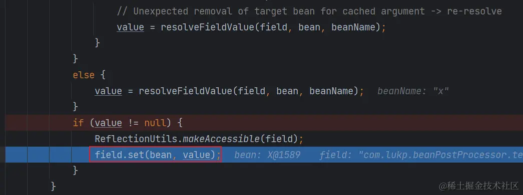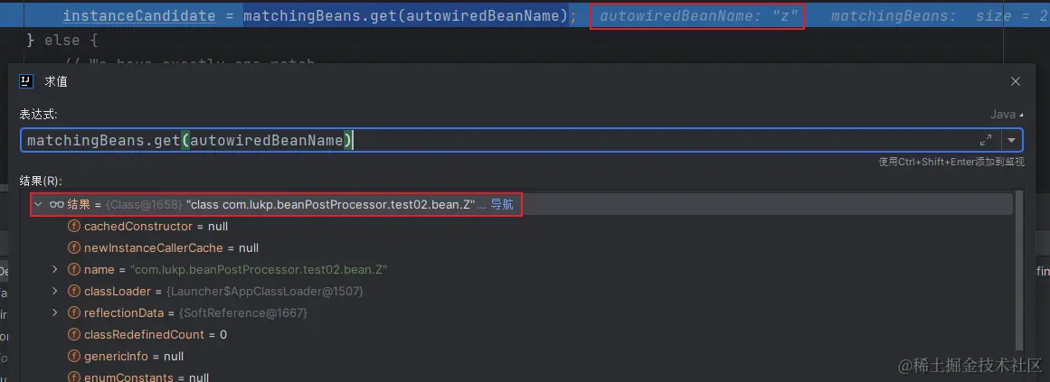 - 然后才会根据下面中的 instanceCandidate = matchingBeans.get(autowiredBeanName); 方法来获取到当前需要注入的 bean: